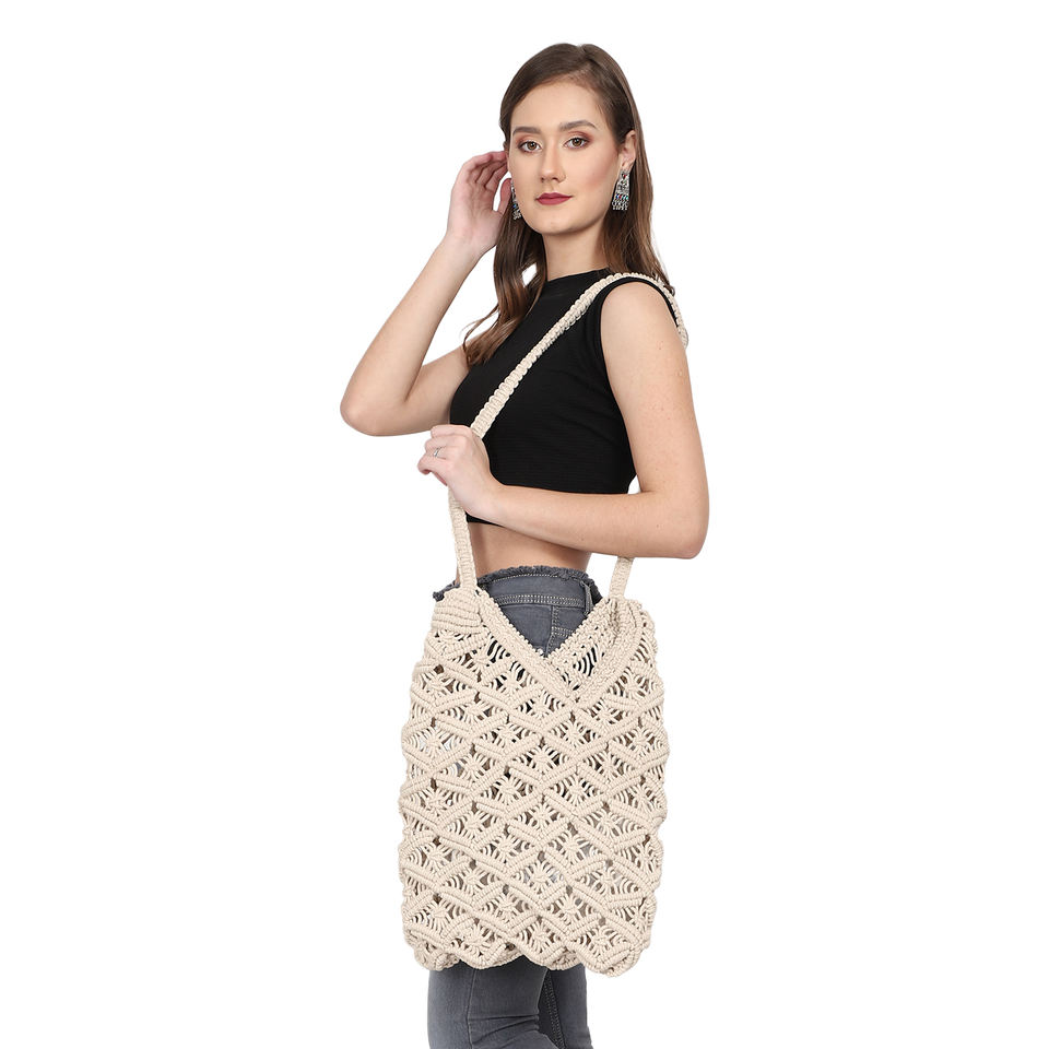 Handmade Cream Macrame Crossbody Bag Solid Color Zipper Boho Style 2 Compact Shoulder Purse Canada Europe Wholesale