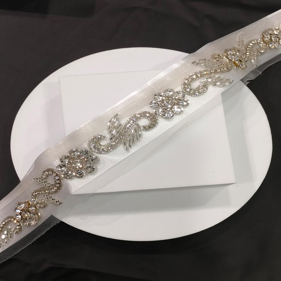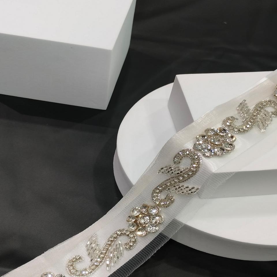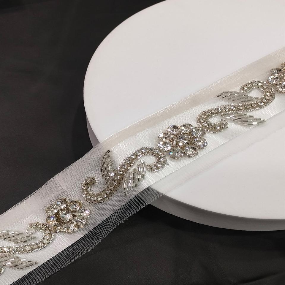 Handmade Crystal Stone Embellished Diamond Lace Trim Net Lace Border for Saree Lehenga Dupatta & Dress Craft Decoration