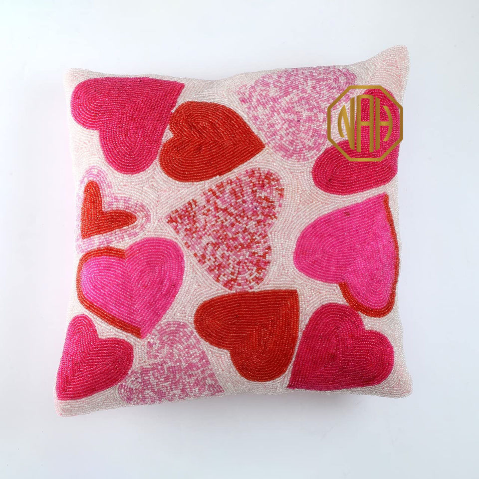 Handmade Cushion Cover Heart Beaded Embroidery Decorative Pillow Case Factory Direct Custom Design Export Wholesale Home Decor