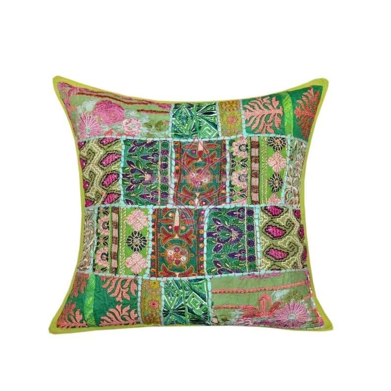 Handmade Cushion Cover Khambadiya Patchwork Cushion Cover Sofa Decor Boho Cotton Fabric Embroidered Indian Pillow Cover