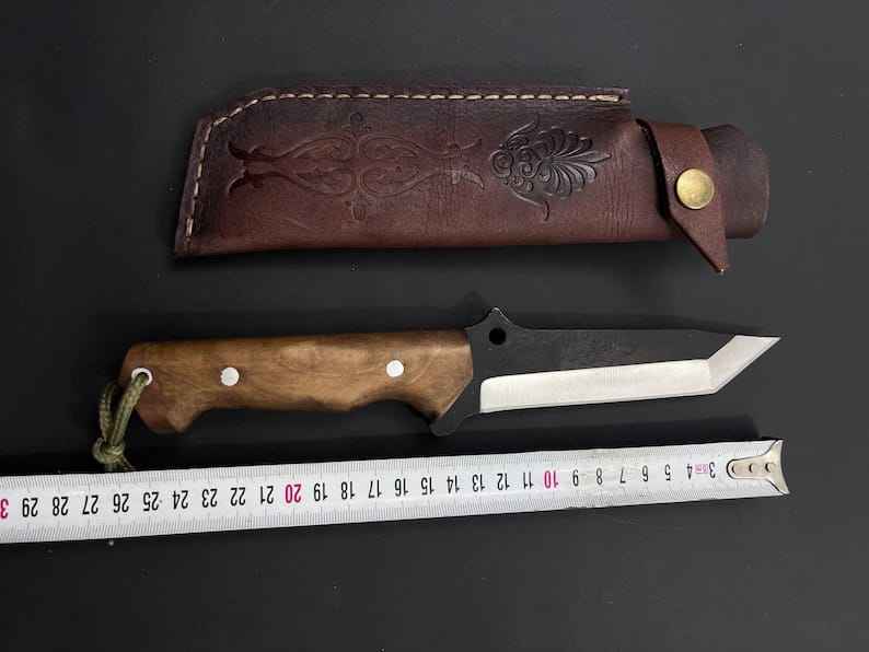 Handmade Custom 1095 Steel Hunting Knife Full Tang Straight Point Carbon Steel Customizable Leather Sheet OEM Rose Wood Handle