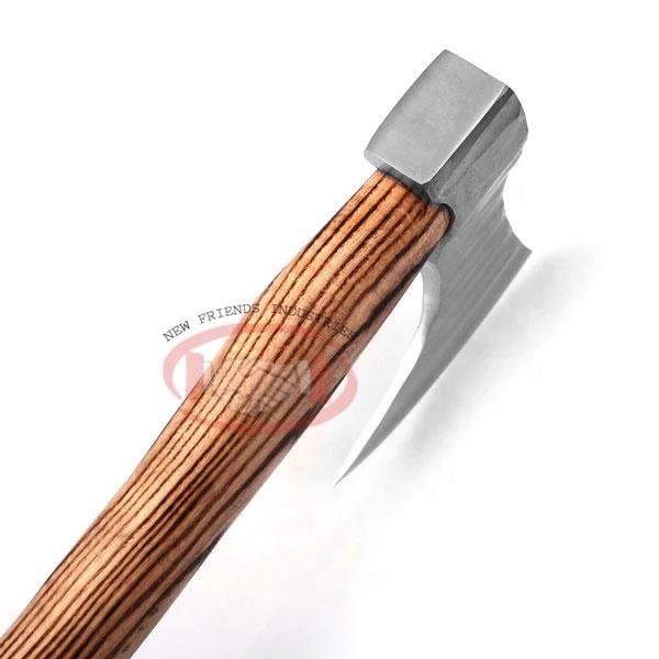 Handmade Custom Bearheaded Carving Hatchet Damascus Steel Blade Solid Wood Axe Head Leather Sheath One-of-a-Kind Camping Tool