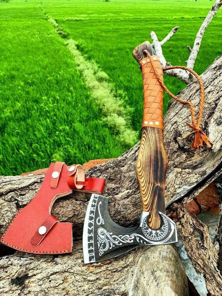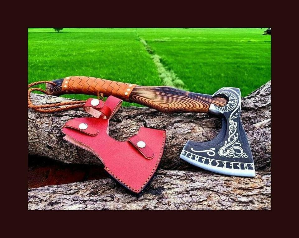 Handmade Custom Carbon Steel Viking Axe with Wooden Handle Industrial Grade Bearded Survival Outdoor Axe