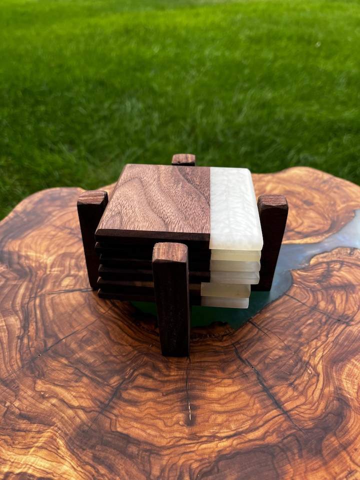 Handmade Custom Coaster Set, Available in Wood Resin or Joint Styles with OEM Branding and Logo Support