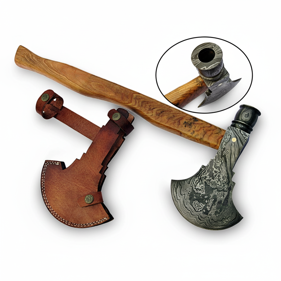 Handmade Custom Damascus Steel Axe High Performance Hatchet with High Carbon Steel Axe Head Wood Handle for Hunting & Cutting
