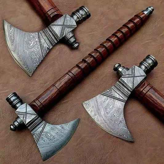 Handmade Custom Damascus Steel Axe with Wooden Handle for Hunting Safety & Survival Gear