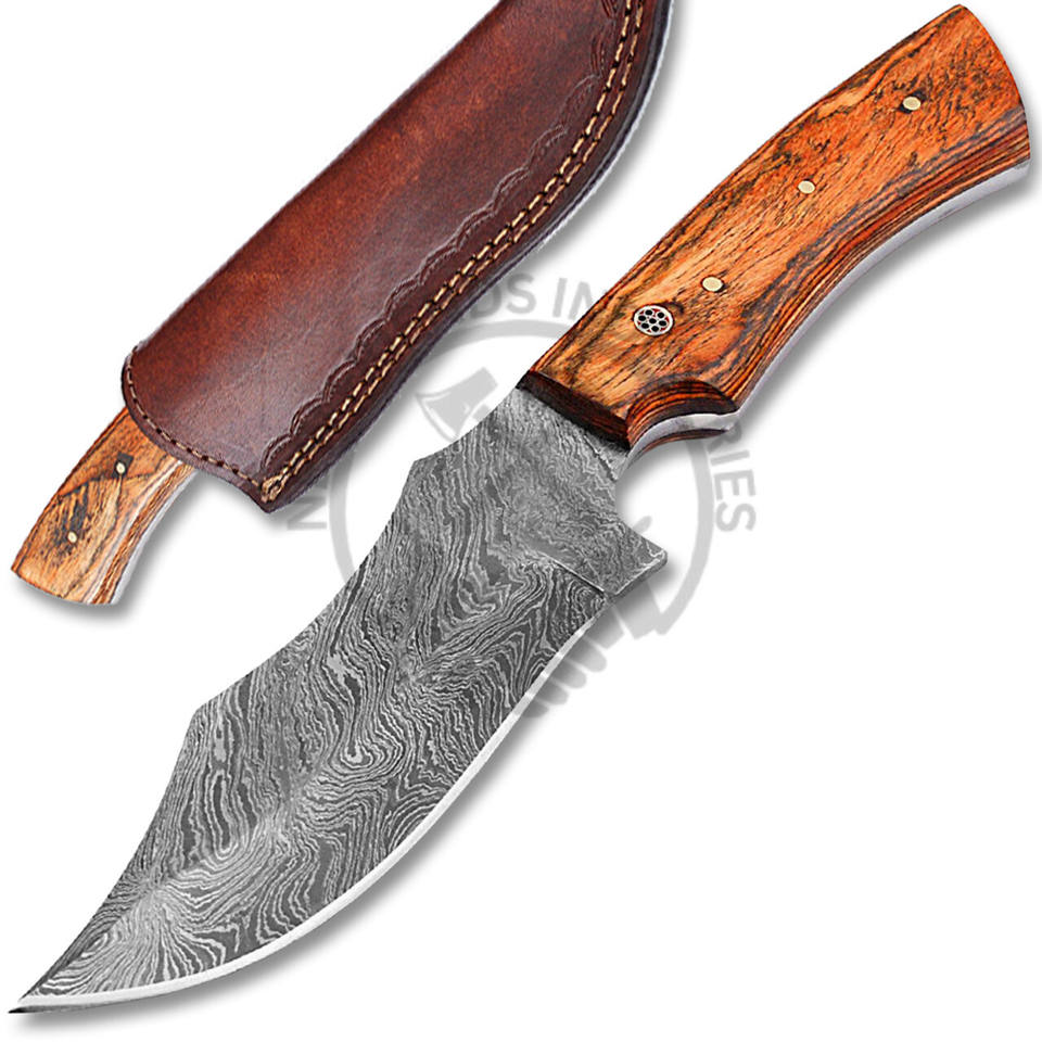 Handmade Custom Damascus Steel Fixed Blade Knife Full Tang Outdoor Multifunctional Hunting EDC with Rose Wood Handle OEM Support