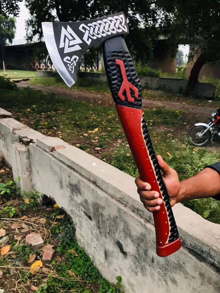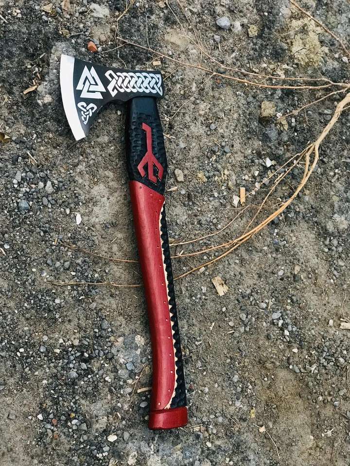 Handmade Custom High Carbon Steel Forged Viking Axe Versatile Damascus Axe Head Hatchet Hickory Wood Vintage Style Camping