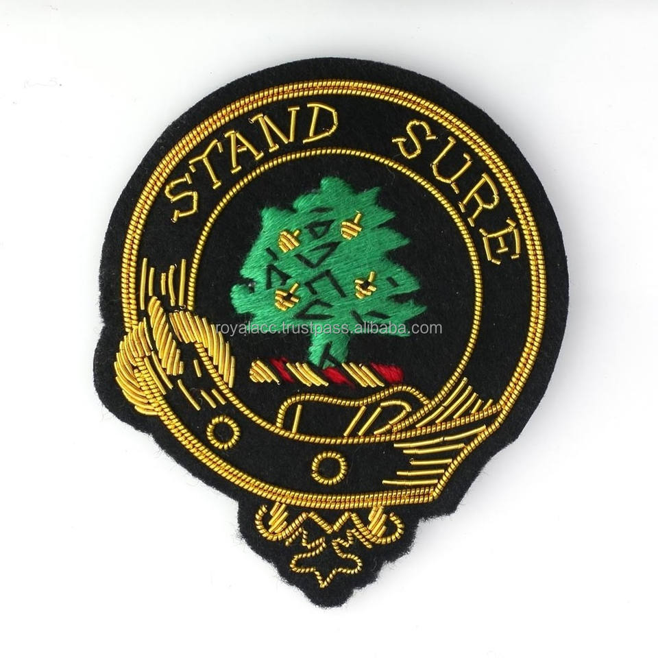 Handmade Custom Size Sew-On Embroidered Blazer Insignia Emblem Personalized Clan Crest Gold Wire Thread Magnetic for Cars Bags
