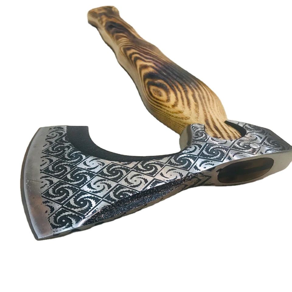 Handmade Custom Viking Axe High Carbon Steel Axe Head with Wooden Handle for Outdoor Cutting and Camping