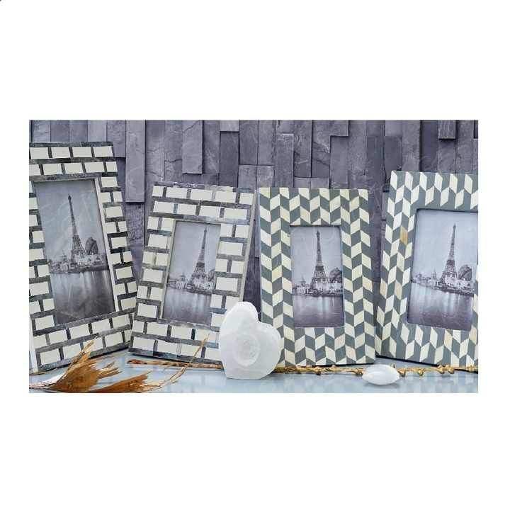 Handmade Customizable Brown Natural Sheen Horn Bone Inlay Wood Picture Frames with Resin Faux Horn Mosaic Border