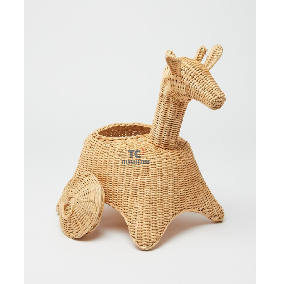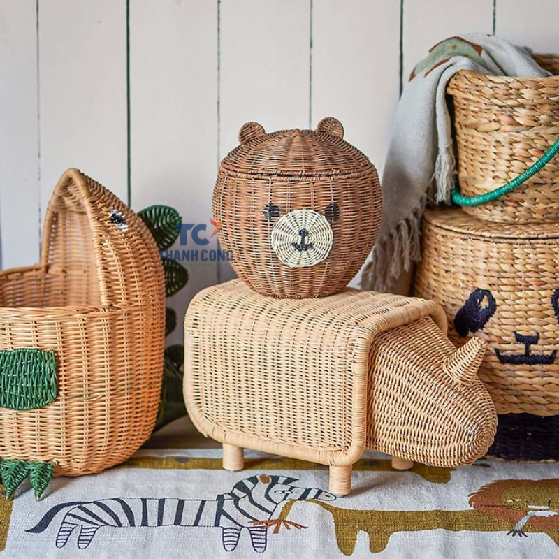 Handmade Customized Cute Animal Shaped Rattan Basket Wicker Lid Toy Storage Organizer for Baby & Kids for Desktop Decoration