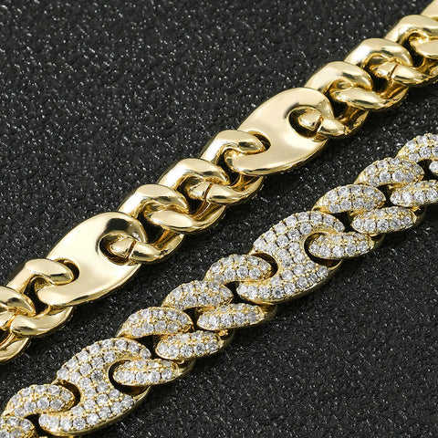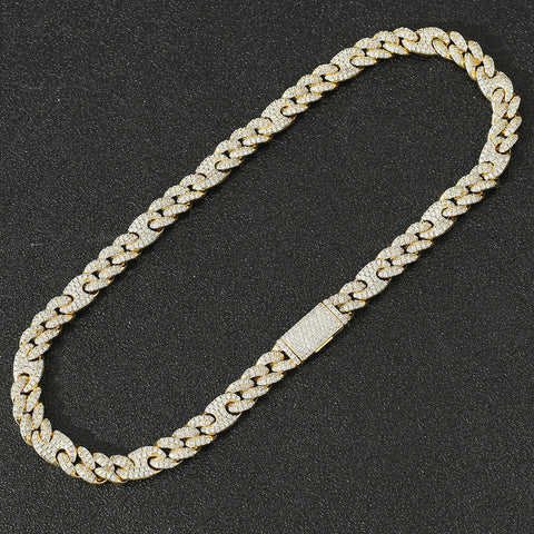 Handmade Customized Fully Iced Out Moissanite Diamond Miami Cuban Link Chain Necklace in Gold for Men Wedding Party