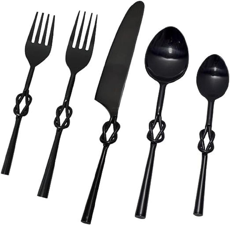 Handmade Customized Wholesale Price Classic Design Metal Stainless Steel Gold Plated Cutlery Set With Black Matte Handle