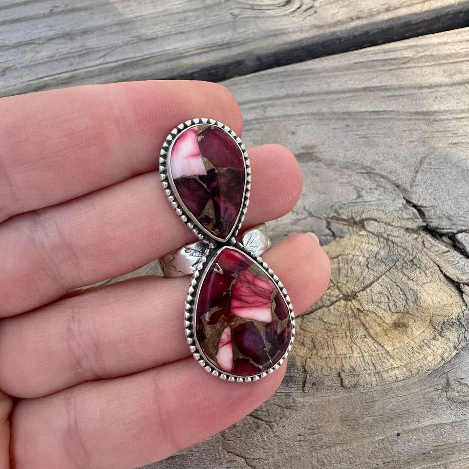 Handmade Dahlia Rose Sterling Silver Adjustable Two Stone Ring for Women