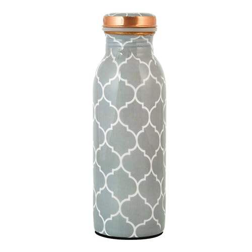 Handmade Daily Use Copper Water Bottle with Health Benefits, Wholesale Flower Design Printed Metal Drinkware for Bulk Orders