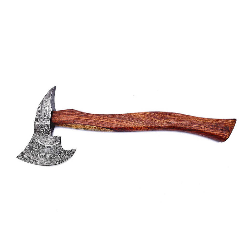 Handmade Damascus Steel Axe Durable Wooden Handle Industrial Grade Camping Axe for Outdoor Survival and Hunting