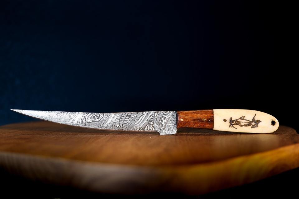Handmade Stainless Steel Industrial Grade Chef Kitchen Fillet Knife Wooden Handle Custom Hand Forged Pure Leather Sheath 3-Year