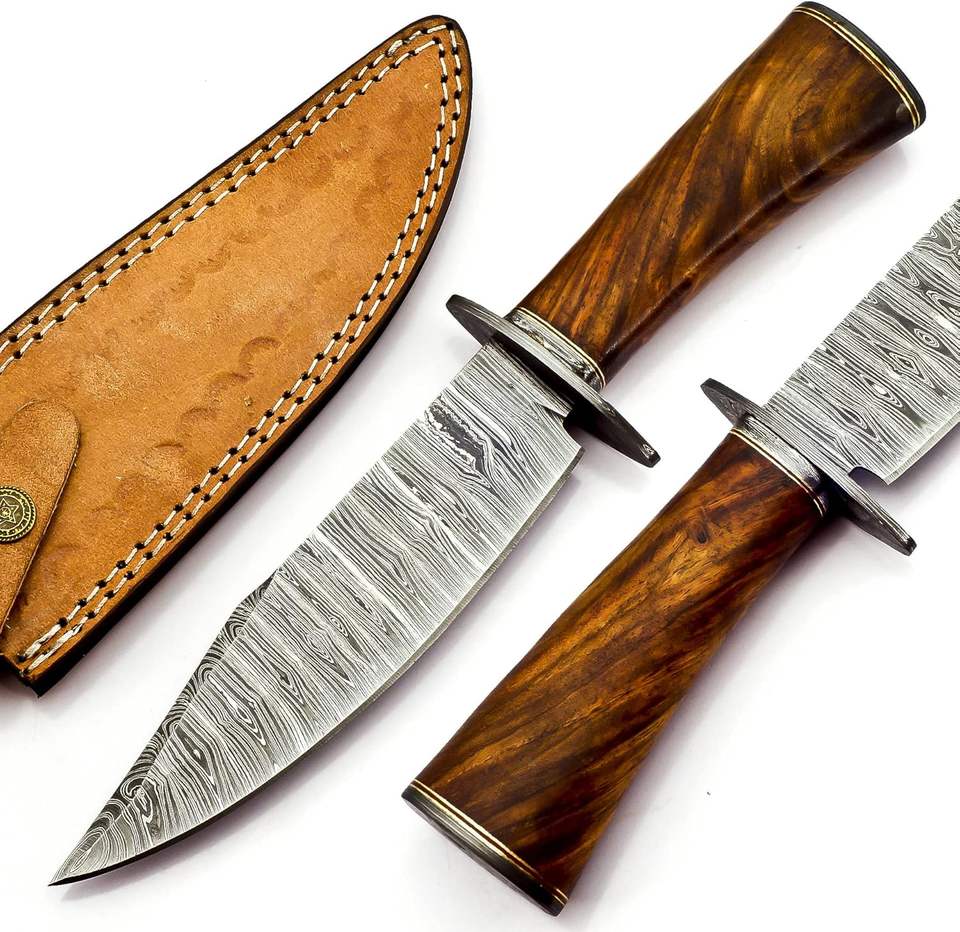 Handmade Damascus Steel Fixed Blade Knife with Rosewood Handle Leather Sheath Multipurpose Everyday Knife OEM Support