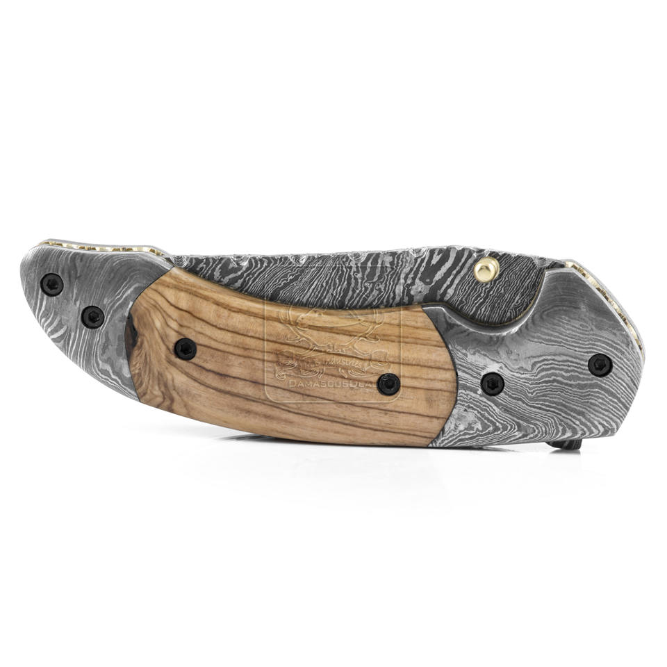 Handle Material:Olive Wood with Damascus Steel Bolsters