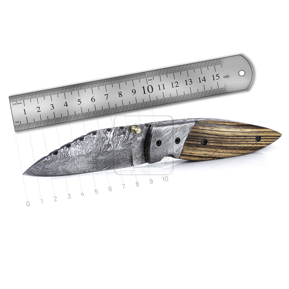 Handle Material:Zebra Wood with Damascus Steel Bolsters