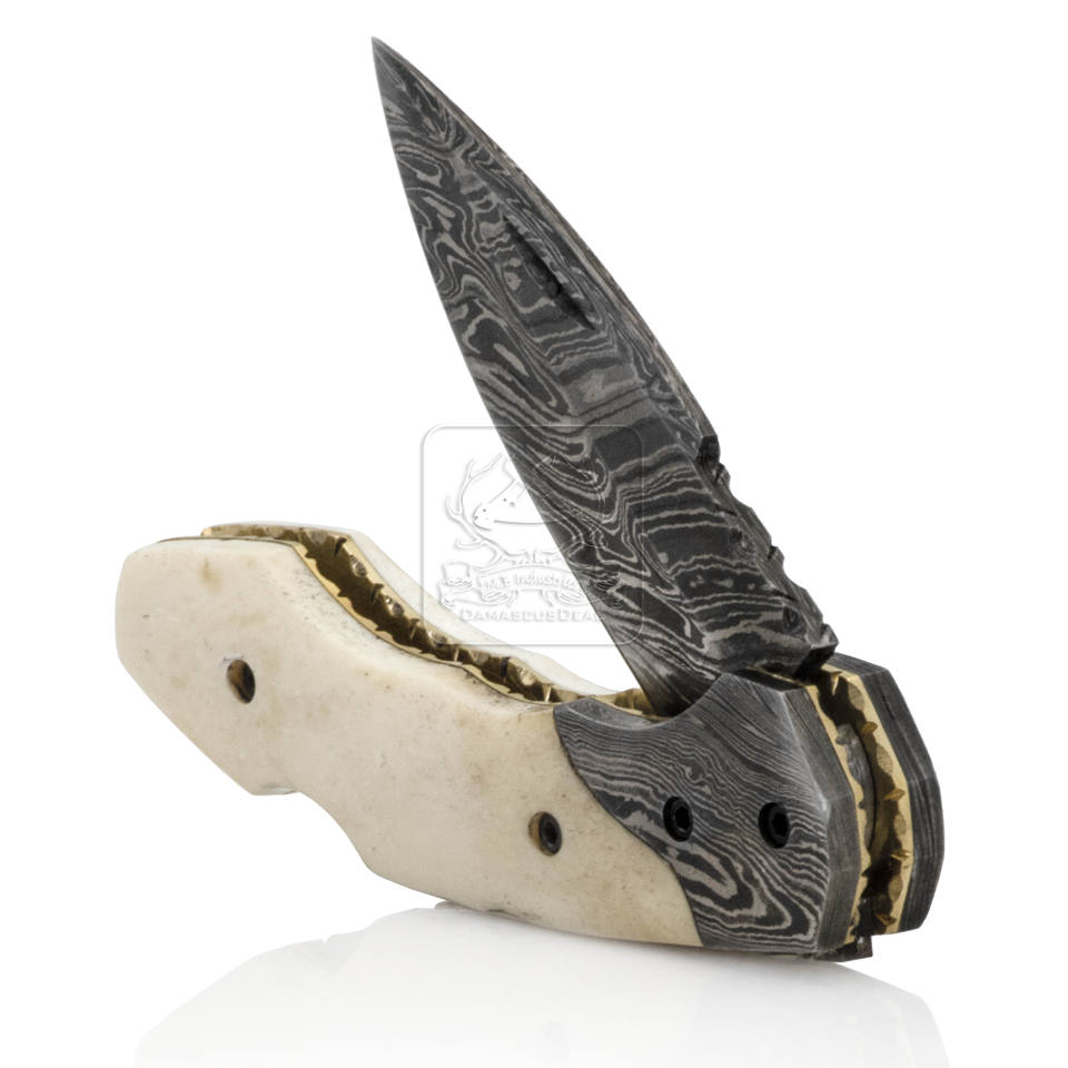 Handmade Damascus Steel Folding Knife DD-FK-644 Pocket Outdoor Survival Bushcraft Camping Knife Stainless Multi-Tool 25mm Horn