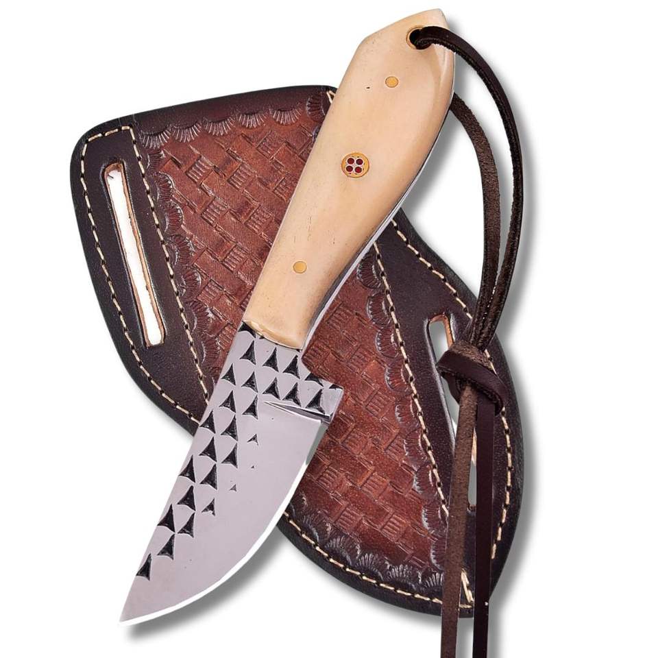 Handmade Damascus Steel Hunting Skinner Knife Every Day Carry Fixed Blade Stainless Steel Leather Sheath OEM Customization