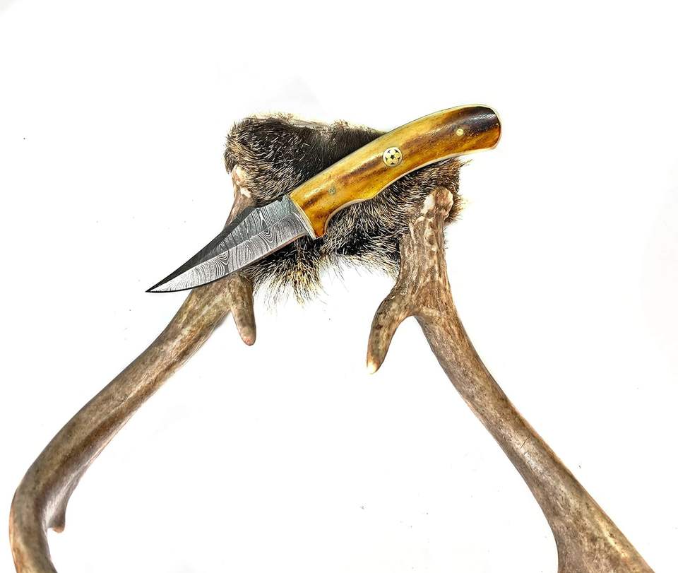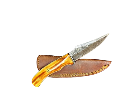 Handmade Damascus Steel Knife with Bone Handle Leather Sheath Included B2B Wholesale camping Tactical outdoor knife hot sale