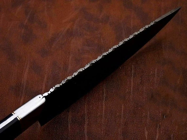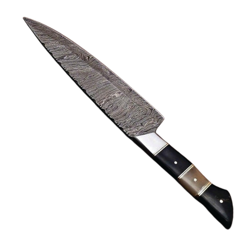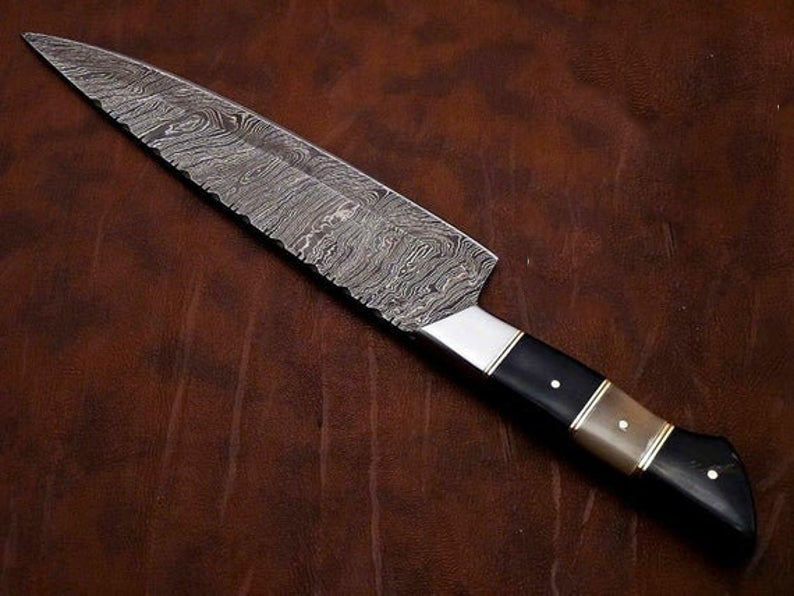 Handmade Damascus Steel Modern Ambidextrous Kitchen Chef Knife Set High Quality Vegetal Cutting Leather Sheath Brushed Finish