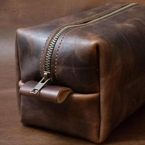 Handmade Dark Brown Genuine Leather Vanity Bag
