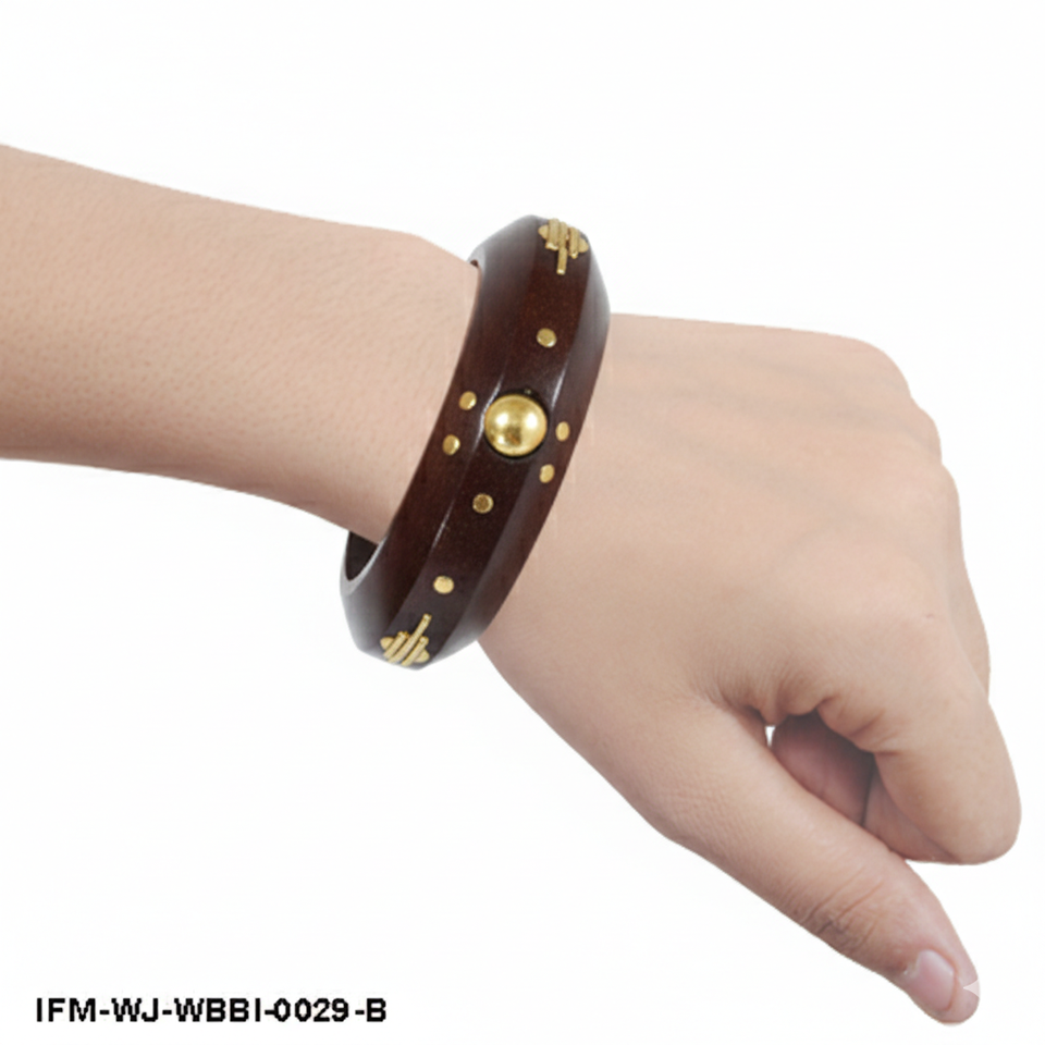 Handmade Dark Wood Bangle with Brass Inlay Bohemian Tribal Geometric Inlaid Wooden Bracelet