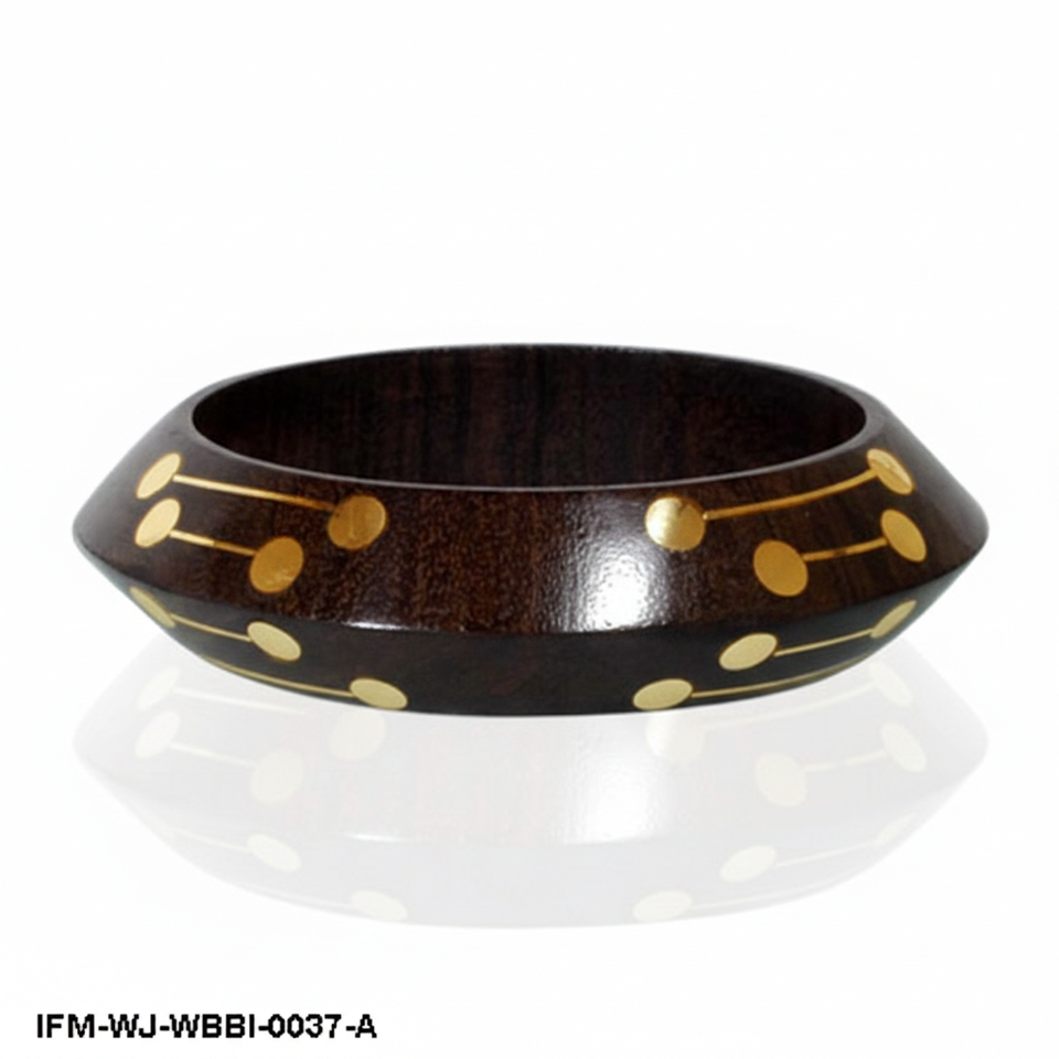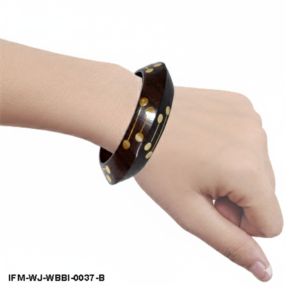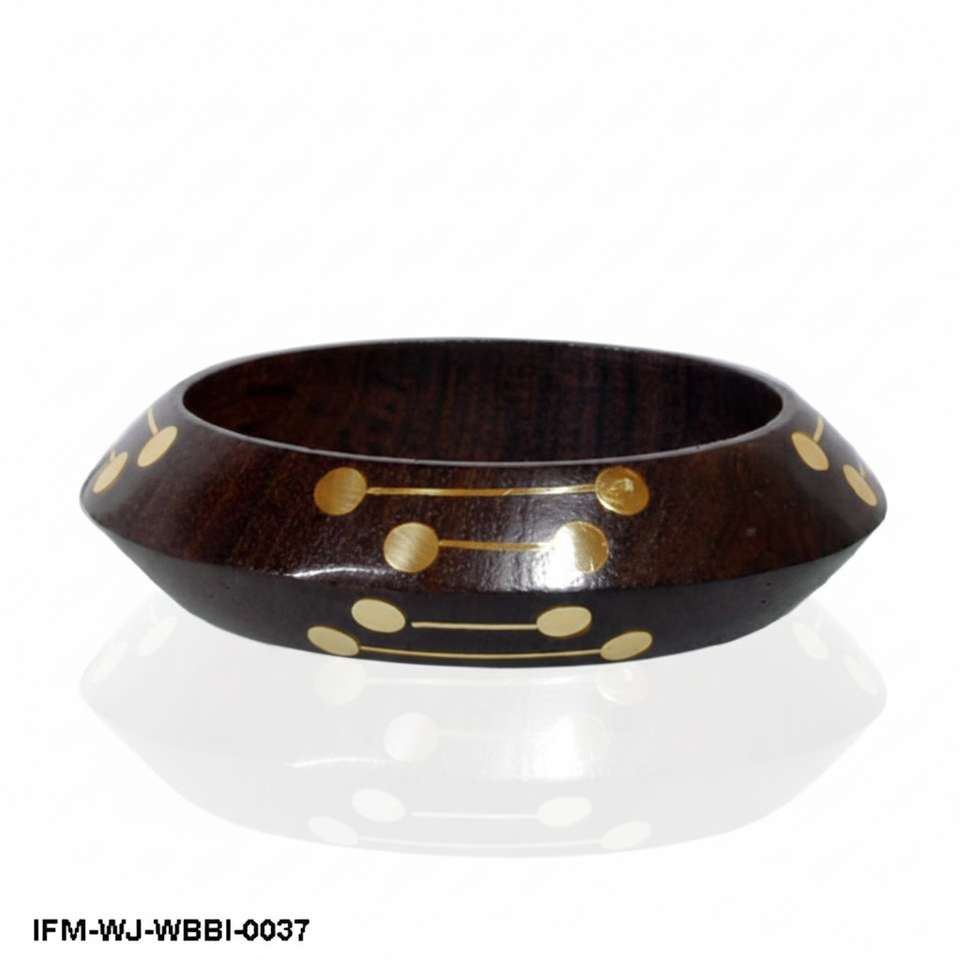 Handmade Dark Wood Bangle with Brass Dot Inlay Boho Geometric Wooden Bracelet Minimalist Ethnic Jewelry for Women