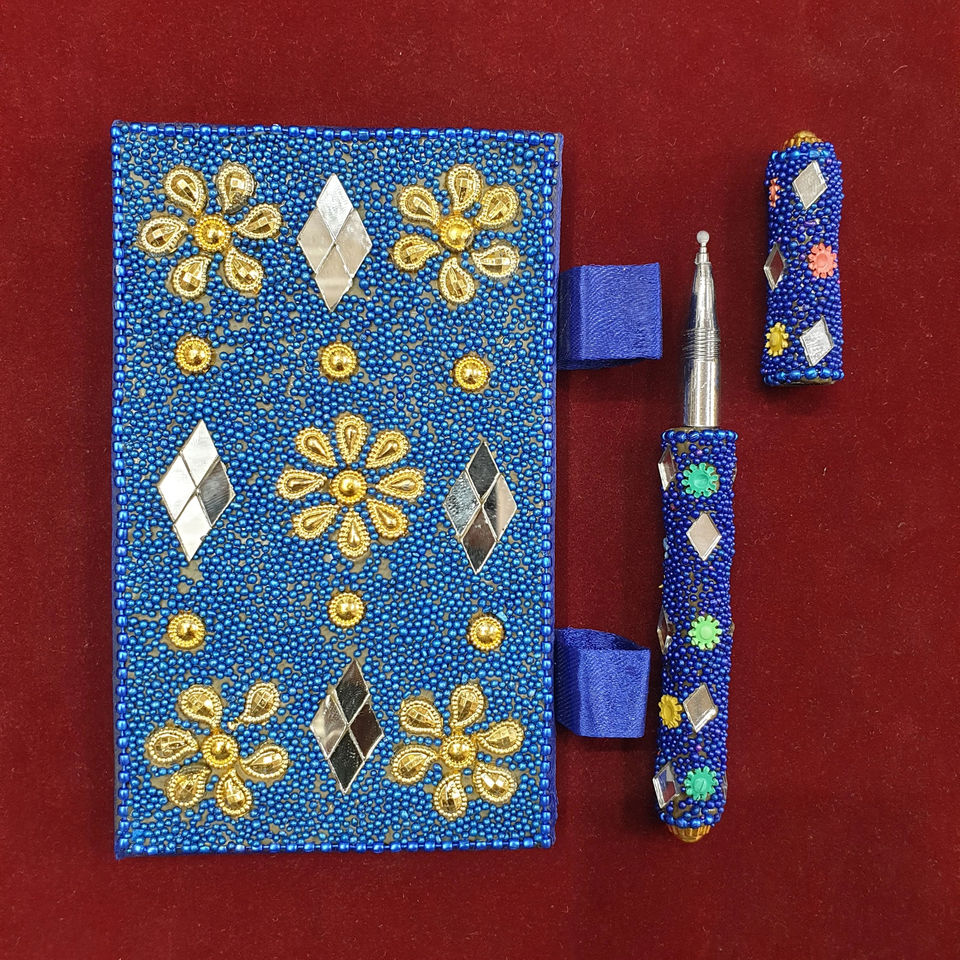 Handmade Decorative Beaded Notebook and Pen Gift Set | Mirror Work Office Decor | Custom Indian Notebook for Gifting