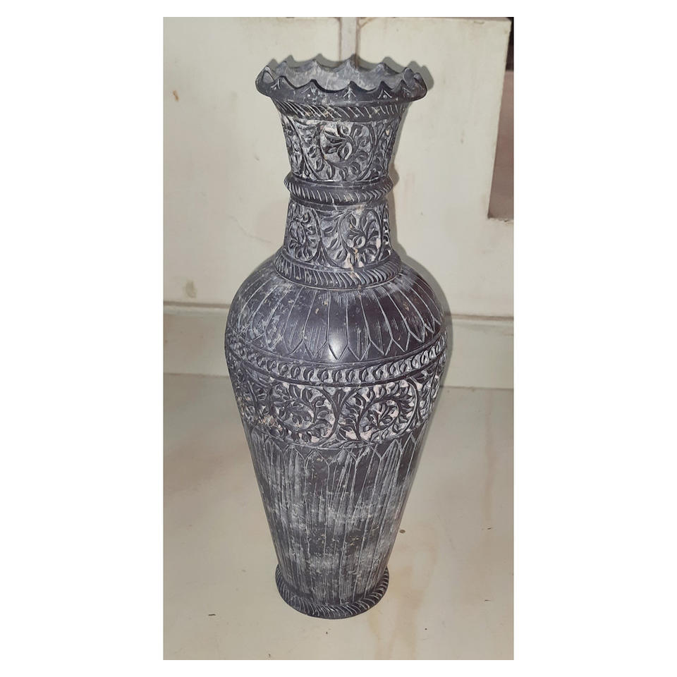 Handmade Decorative Engraving And Carving Art Work Pure Black Soapstone Beautiful Flower Vase For Gifting
