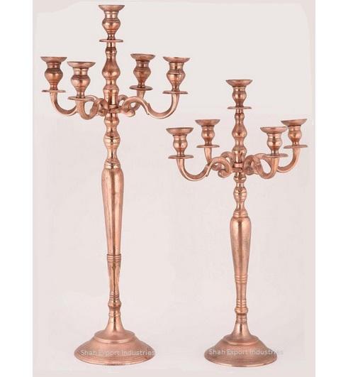 Handmade Decorative Metal Rose Gold Candelabra for Home & Wedding Decorative 5 Arms Tabletop & Floor Candelabra