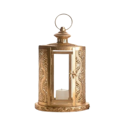 Handmade Decorative Temple Lantern Antique Gold Finished Metal Lantern Temple Shaped Moroccan Lantern