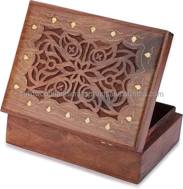 Handmade Decorative Carved Wooden Boxes Home Office Locking Wood Storage Hinged Lid Keepsake Carved Wooden Box