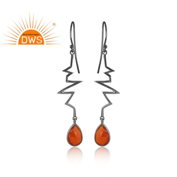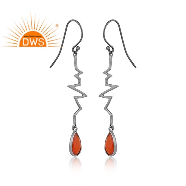 Handmade Design 925 Sterling Silver Natural Red Onyx Gemstone Heart Beat Design Dangle Earring Jewelry Manufacturer