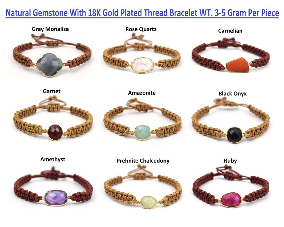 Jewelry Name:Brass With 18K Gold Plated Natural Gemstone Adjustable Thread Bracelet