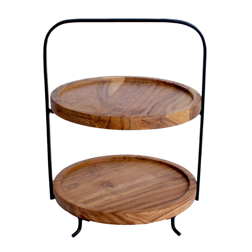 Handmade Design Rounded Shape Birthday Cake Serving Stand Hot Sale Product Royal Look Party Celebration Wooden Cake Server