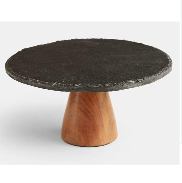 Handmade Design Rounded Shape Cake Serving Stand For Party Celebration Tableware Rounded Wooden Cake Server With Marble Top