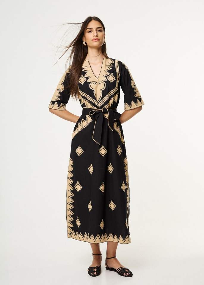 Handmade Designer Bohemian Black Cotton Maxi Dress for Women Oversized Linen Puff Sleeve Embroidery Custom Natural Washable