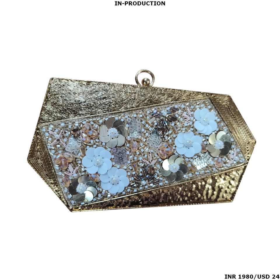 Handmade Designer Brass Clutch Evening Bag with Mother of Pearl (MOP) for Elegant Weddings Parties Events