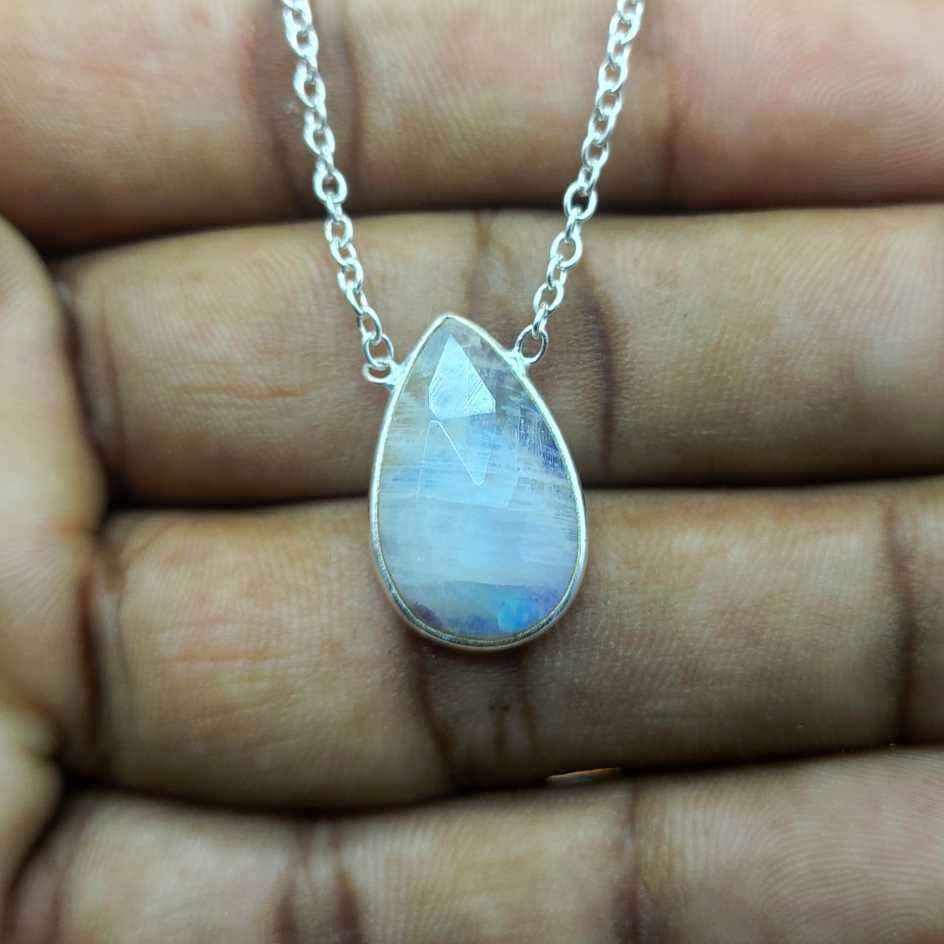 Handmade Designer Chain Necklace in 925 Sterling Silver with Oval Shape Rainbow Moonstone Fine Jewelry Anniversary Wedding Gift