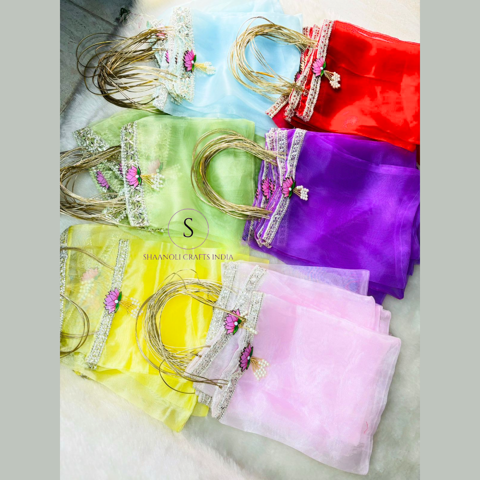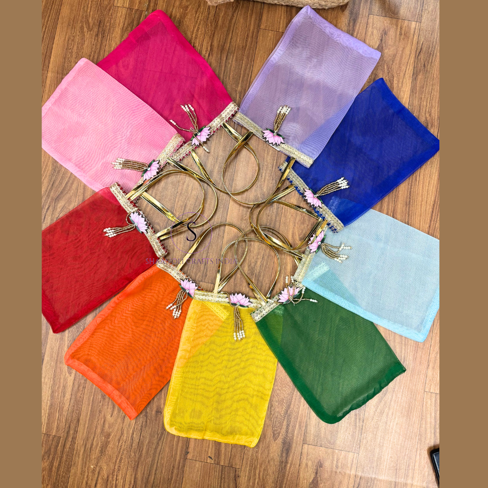 Handmade Designer Net Fabric Handbags Organza Carry Bags With Handles With Small Lotus Pattern Designer Bags for Daily Basis