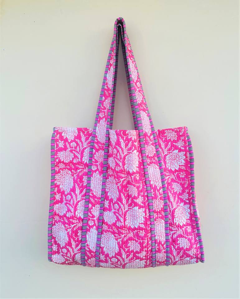 Handmade Designer Small Tote Bag for Women Fashionable Custom Quilted Shoulder Purse Hand Block Printed Design for Summer Spring