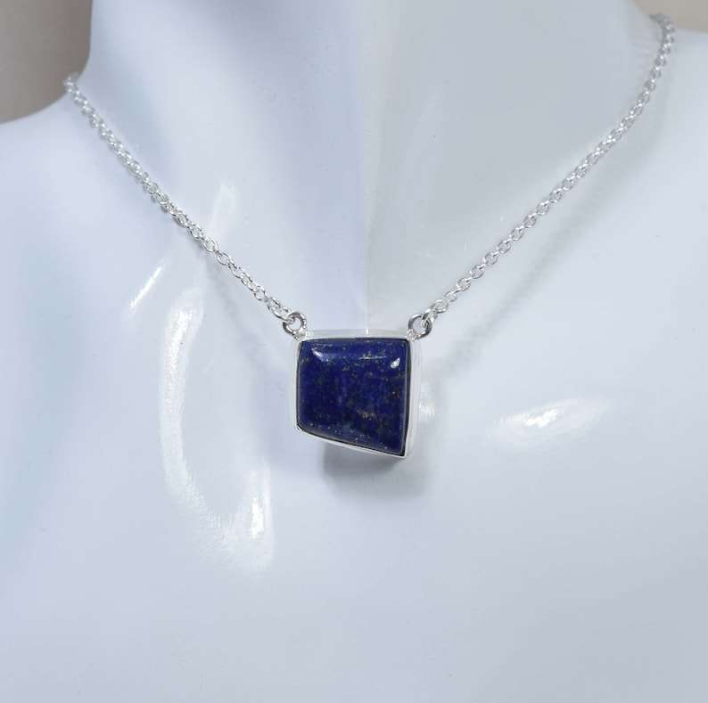 Handmade Designer Women's 925 Sterling Silver Necklace Natural Lapis Lazuli Gemstone Classy Fine Jewelry for Bezel Setting