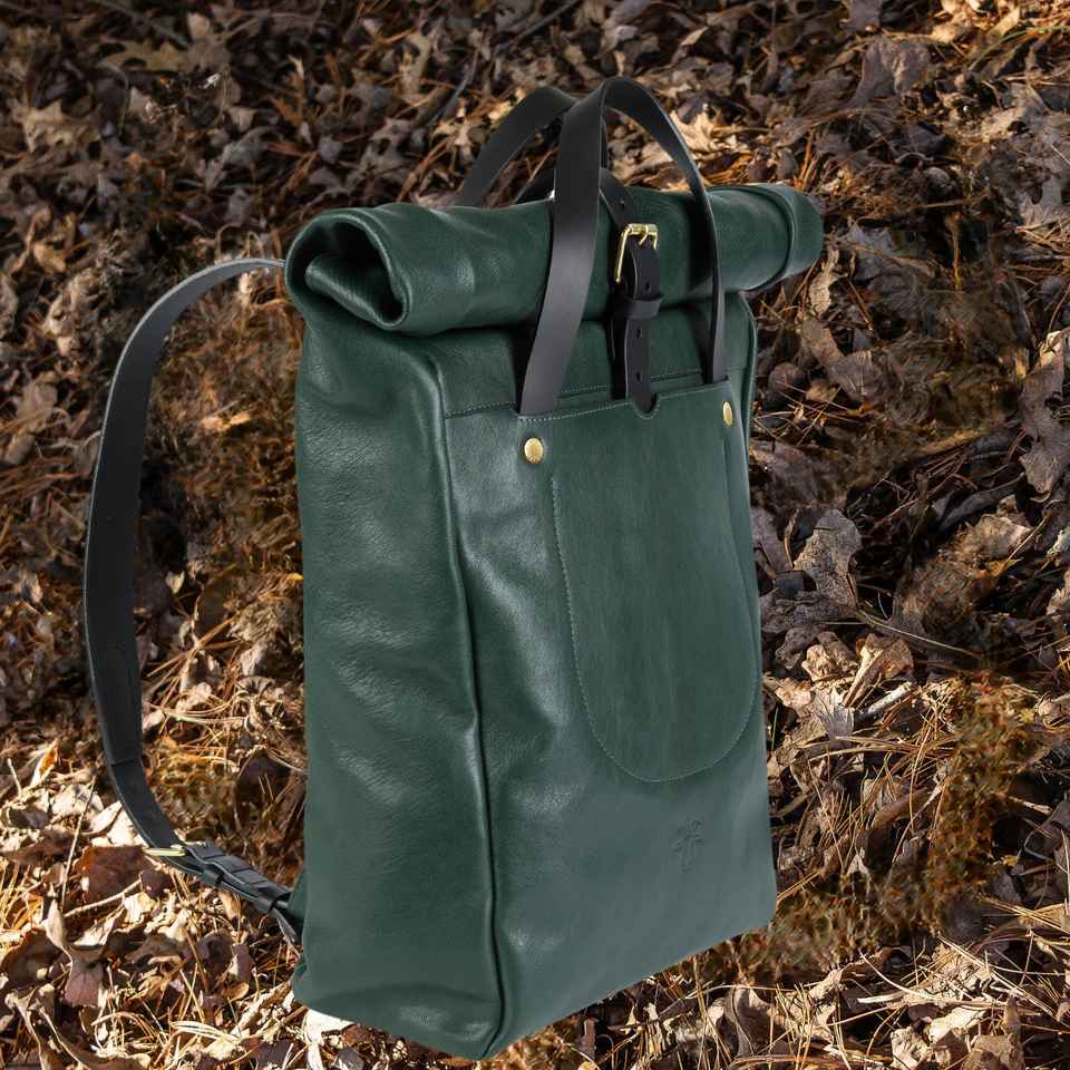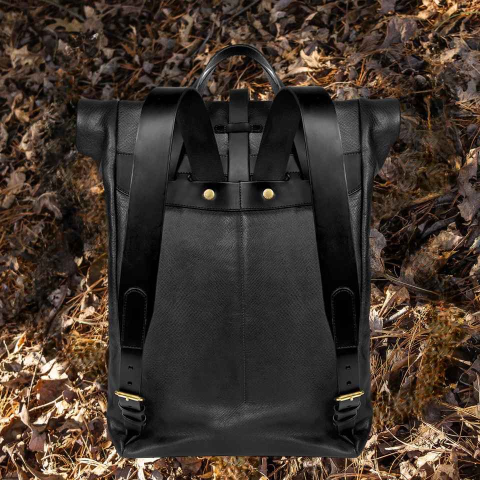 Genuine Leather Roll Top Backpack