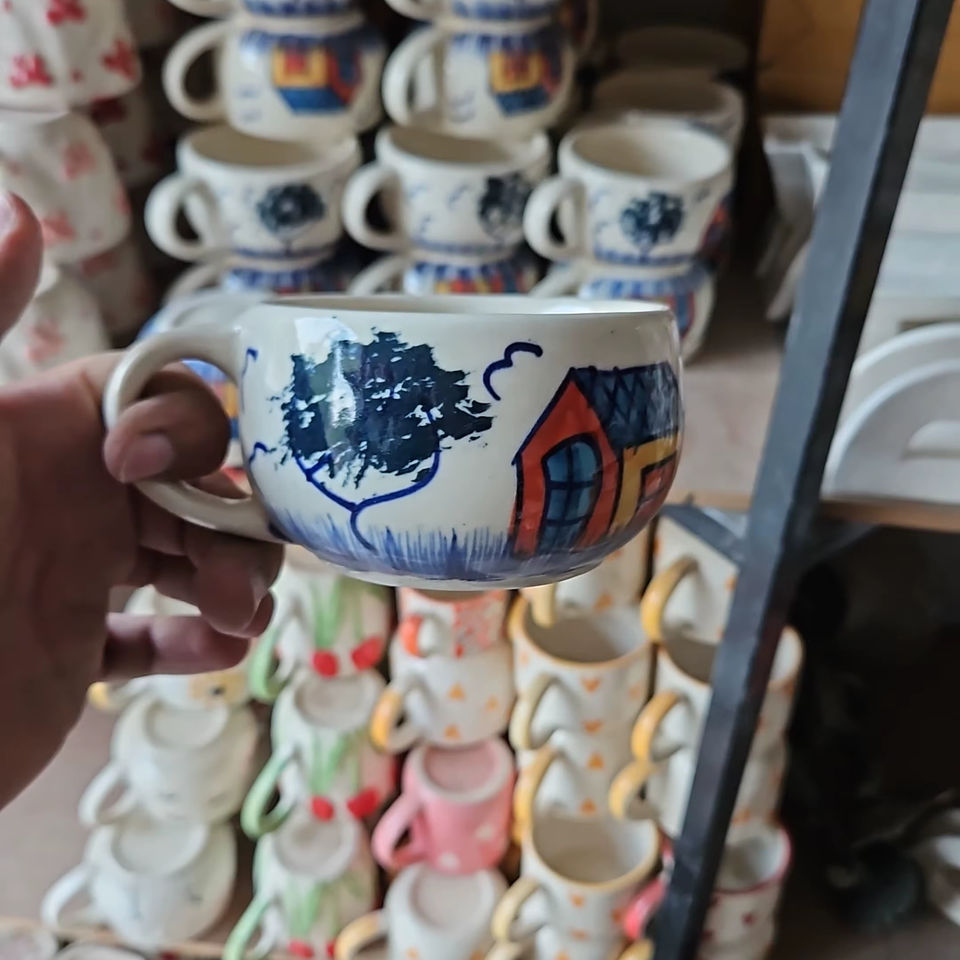 Handmade Drawing Design Ceramic Jumbo Coffee & Tea Cup Microwave Safe Dishwasher Safe