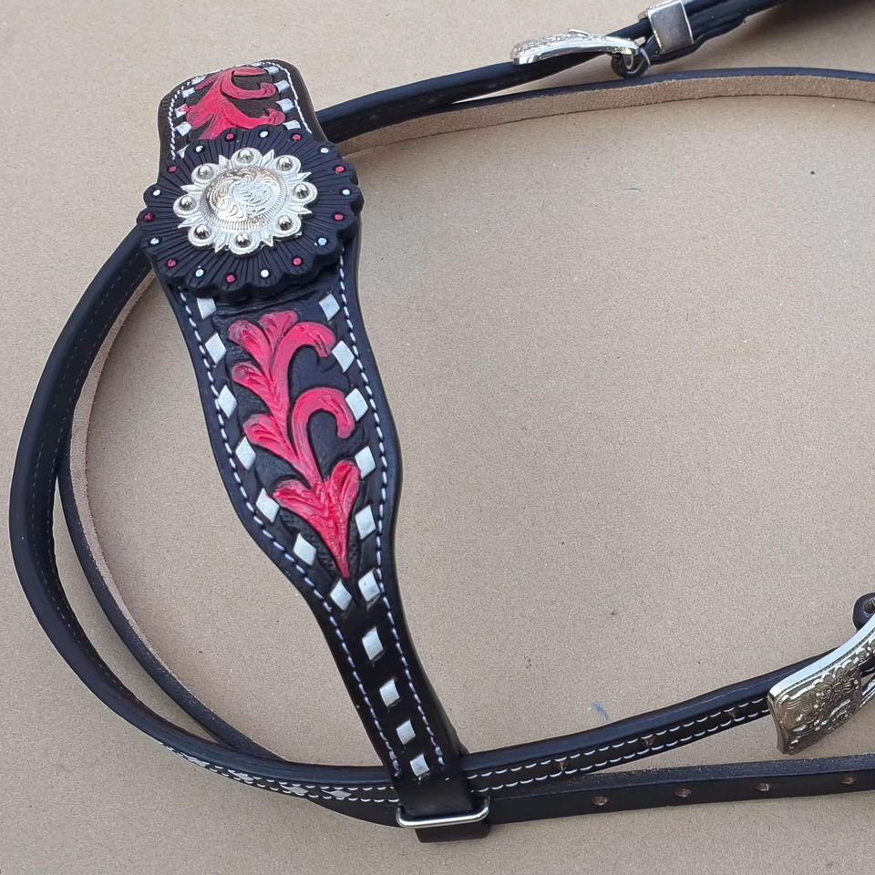 Handmade Durable Custom Printed Equestrian Tack Set Multicolour Leather Horse Headstall Matching Breast Collar Reins Halters